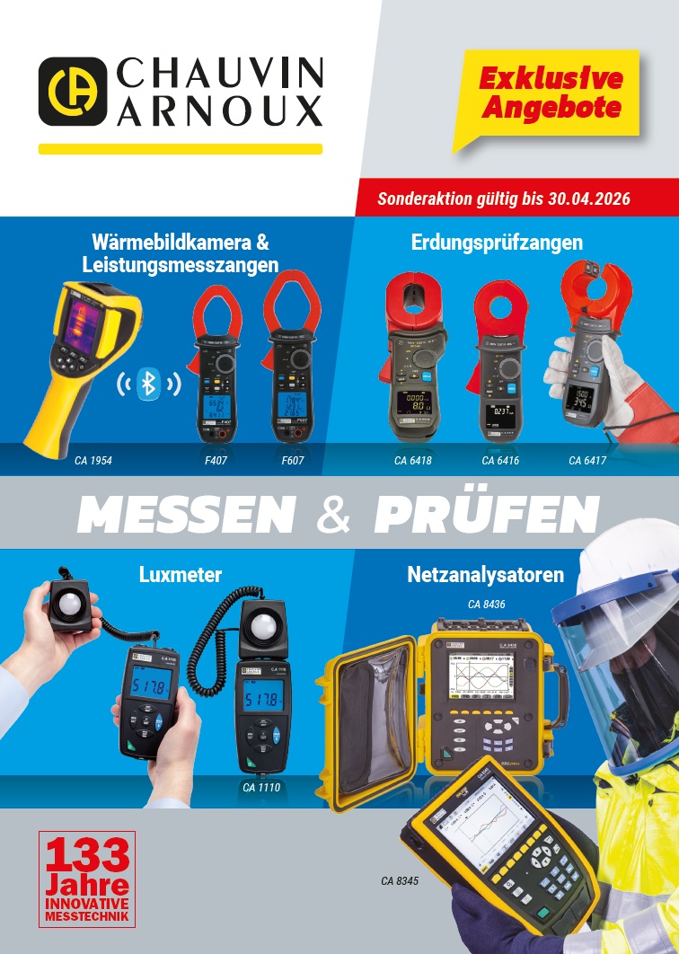 Entdecken Sie unsere zeitlich begrenzte Aktion im Bereich Messen & Prüfen – mit exklusiven Angeboten rund um die Bereiche Erdungsmessung, Leistungs- und Netzanalyse, Thermografie…
