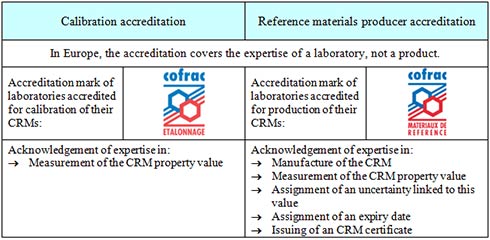 Accreditation of a producer of reference materials is a way of obtaining acknowledgement of the accredited laboratory's expertise by a national accreditation organization (COFRAC, DKD, UKAS, BELAC…).